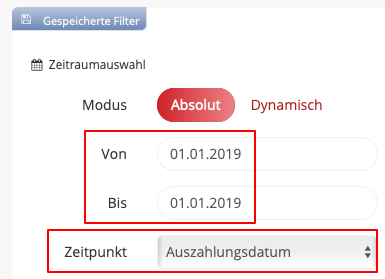 Folgende Filterung zeigt beispielsweise alle Transaktionen, welche am 01.01.2019 ausgezahlt wurden, an.