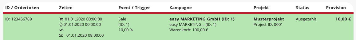 Zeiten: Hier gibt es drei Zeit-Stempel: Zeitpunkt des Klicks, des Einkaufs sowie der Zeitpunkt an dem die Auszahlung angestoßen wurden.