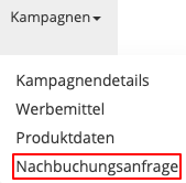 Hierfür steht im Frontend der Menüpunkt “Nachbuchungsanfrage” zur Verfügung. Dieser ist über den Reiter “Kampagnen” erreichbar.