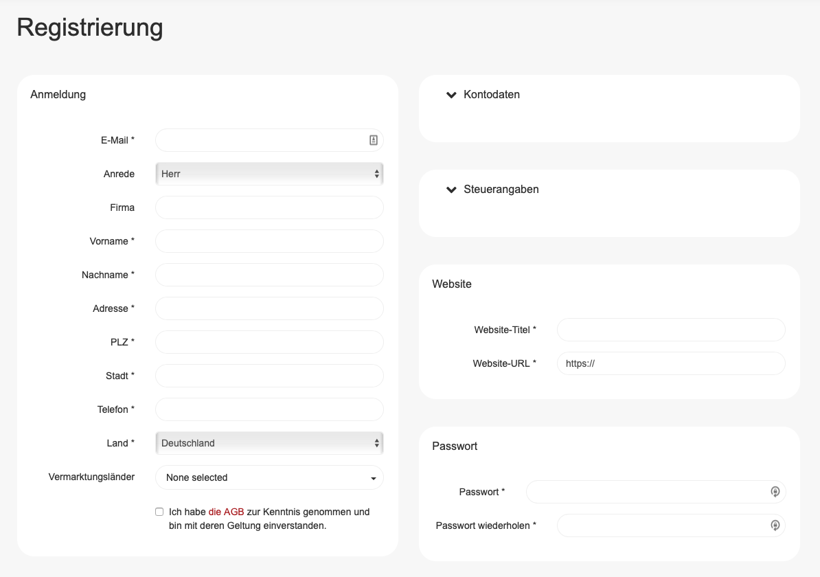 Wenn noch keine Partnerschaft besteht, ist es möglich, sich für das Netzwerk zu registrieren. Hierzu die entsprechende Partner-URL aufrufen und auf den Button “Jetzt registrieren” klicken.