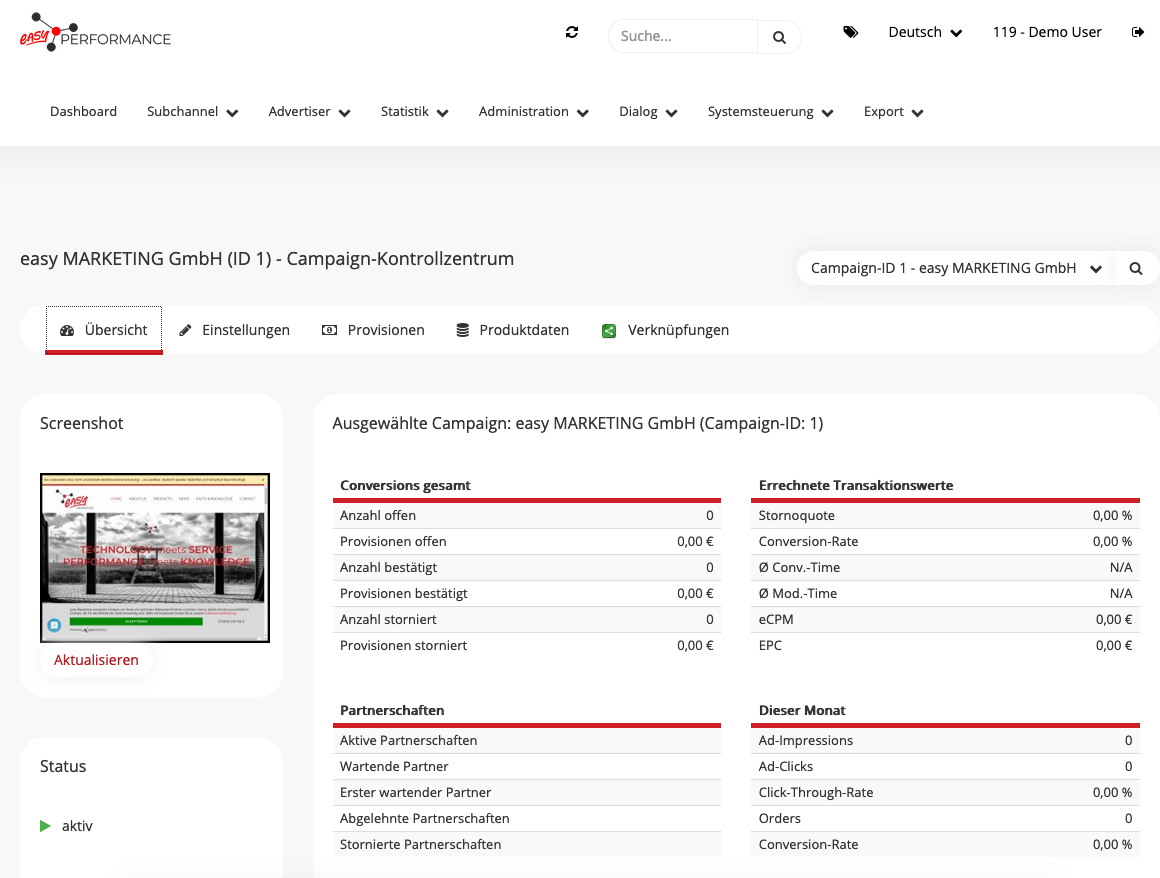 Im Kampagnen-Kontrollzentrum können diverse Einstellungen für die Kampagnen getroffen werden.