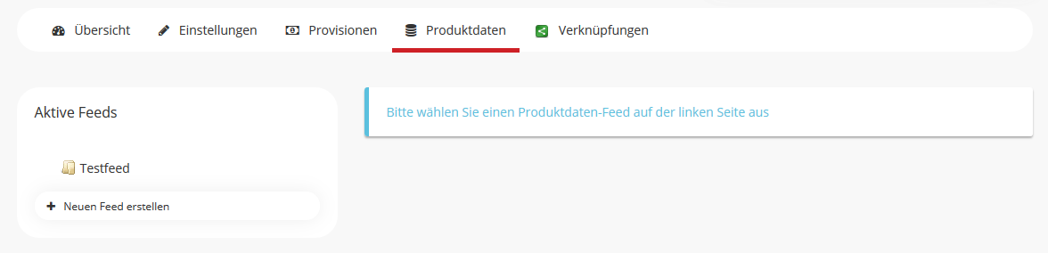 - Produktdaten: Unter diesem Punkt werden Produktdaten gepflegt. Hier können Feeds angelegt werden, welche Sie bspw. in Google Shopping, Affiliate-Netzwerken, Preisvergleichen usw. bereitstellen können.