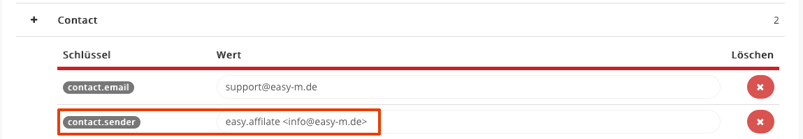 < >Zeichen eingegeben. In dem Beispiel wäre dieseasy.affiliate. Der Wert innerhalb der< >wäre die Absender-E-Mail-Adresse. - Um nun den Absendernamen zu ändern, muss der Wert vor den