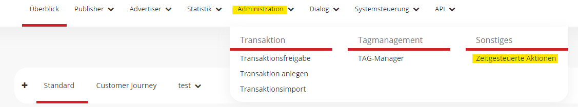 Wenn eine zeitgesteuerte Aktion gespeichert wurde, kann diese unter Administration/ Zeitgesteuerte Aktionen überprüft werden.
