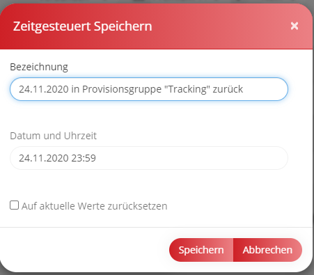 Nun muss nur das Datum ausgewählt werden, an dem das Projekt wieder in die vorherige Provisionsgruppe verschoben werden soll. In unserem Beispiel wäre das der 24.11.2020.