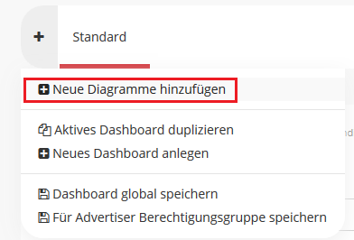 - Erste Möglichkeit: Das kleine Plus-Symbol über den bereits bestehenden Diagrammen anklicken und den Menüpunkt “Neue Diagramme hinzufügen” auswählen.