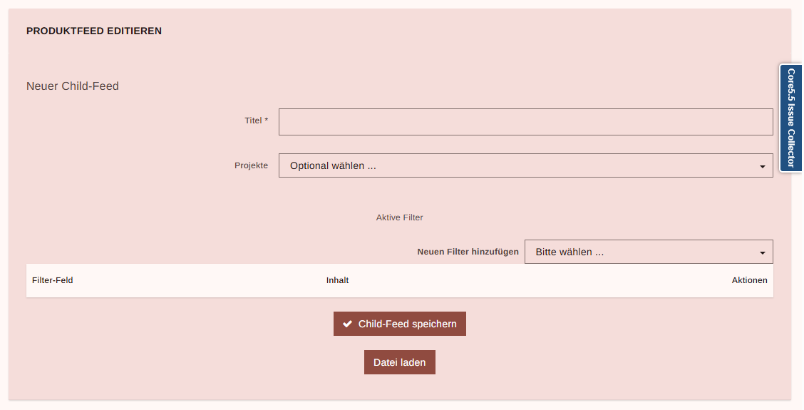 Für die anschließende Einrichtung eines Childfeeds muss über den Masterfeed unter “Aktionen” der Menüpunkt “Childfeed hinzufügen” angeklickt werden: