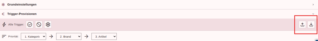 Dazu stehen oberhalb der Trigger-Provisionen folgende Buttons zur Verfügung: