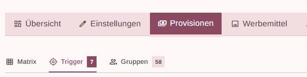 Matrix (Übersicht der Einstellungen nach Trigger und Provisionsgruppen).