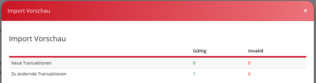 Unter „Gültig“ sollte die Anzahl der zu ändernden Transaktionen angezeigt werden.