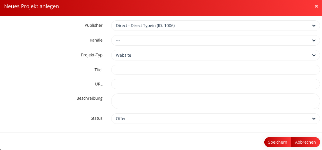 In der sich nun öffnenden Eingabemaske können die entsprechenden Daten des Projekt eingepflegt werden: