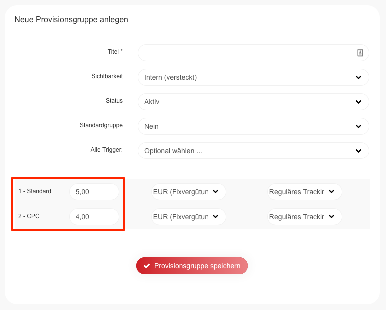 Provisionsgruppen werden verwendet, um verschiedenen Publishern unterschiedliche Provisionen zu ermöglichen.