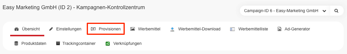 Um eine neue Provisionsgruppe anzulegen, muss zur entsprechenden Kampagne navigiert werden.