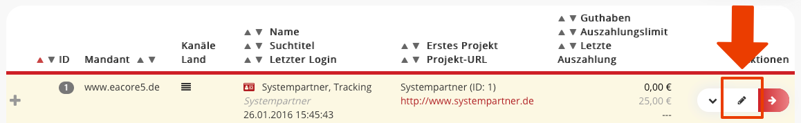 Anschließend zum entsprechenden Publisher, welcher gelöscht werden soll, navigieren und den Bearbeitungsmodus, meist über das Stift Icon, aufrufen.