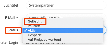 In dem sich nun öffnenden Fenster, können sämtliche Einstellungen am Publisher vorgenommen werden. Wichtig zum löschen ist der Punkt Status. Dort kann der Status “gelöscht” ausgewählt werden. Diesen Status auswählen und anschließend die Einstellung speichern.