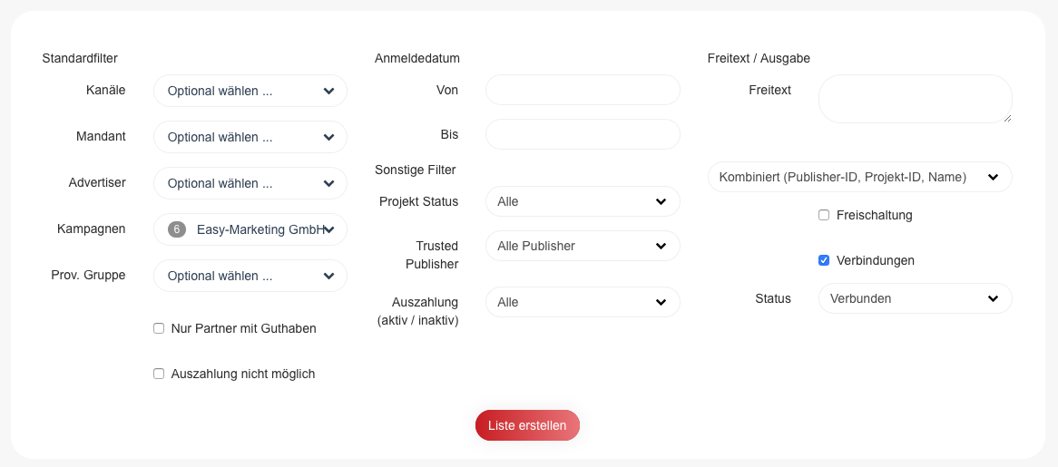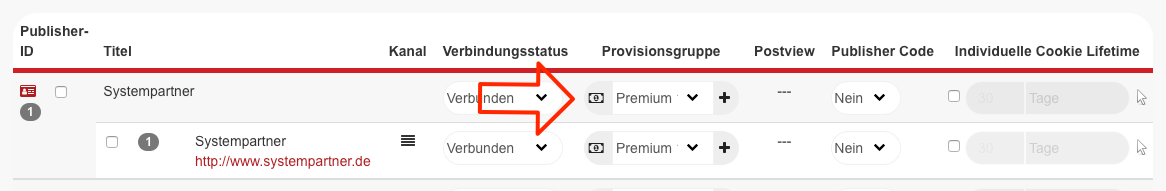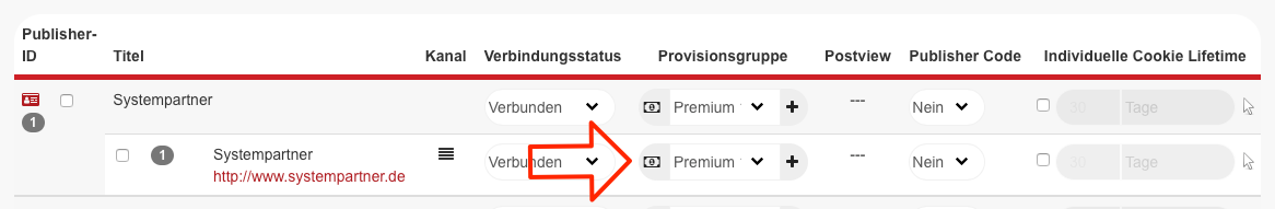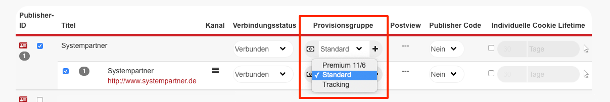 Wenn ein Publisher eine Sonderprovision erhalten soll, kann dies über die Provisionsgruppen eingerichtet werden.