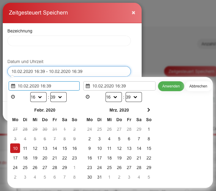 Anschließend wird nicht der Button „Speichern“, sondern „Zeitgesteuert Speichern“ angeklickt.