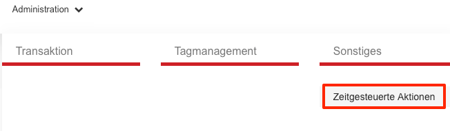- Über den Reiter „Administration“ auf „Zeitgesteuerte Aktionen“ navigieren.