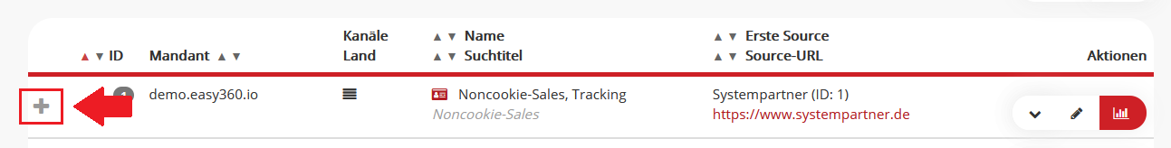 Über das „+“ Zeichen auf der linken Seite können die Sources der einzelnen Subchannel angezeigt und weitere hinzugefügt werden. Dazu den Button „+ Neue Source anlegen“ anklicken.