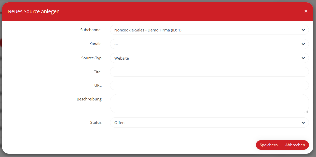 Nun öffnet sich ein weiteres Fenster, in dem die entsprechenden Einstellungen für die Anlage einer neuen Source vorgenommen werden müssen.