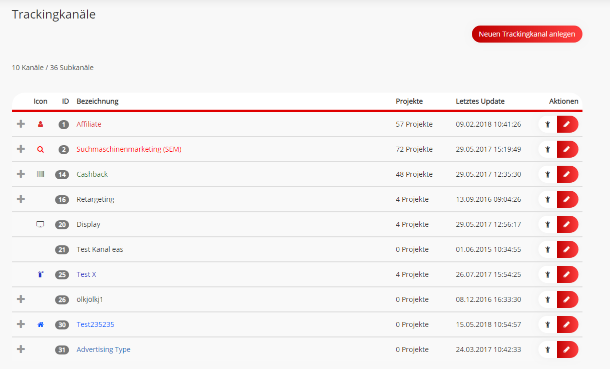 Unter Trackingkanäle kann den Publishern ein Kanal zugewiesen werden.