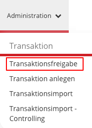 Um die eingereichten Nachbuchungsanfragen einzusehen, muss über den Reiter “Administration” der Punkt “Transaktionsfreigabe” angesteuert werden.