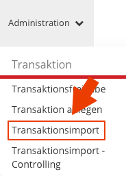 Anschließend wird im Partnerprogramm der Menüpunkt “Transaktionsimport” unter dem Reiter “Administration” ausgewählt.