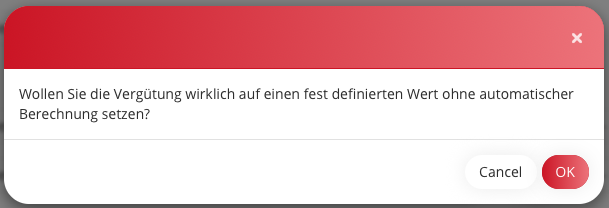 Wird beim Feld Vergütung die “Commission” ausgewählt, öffnet sich ein Hinweisfenster. Dieses muss bestätigt werden: