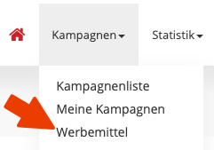 Jedem Publisher stehen die für ihn freigeschalteten Werbemittel und somit Klicklinks zur Verfügung. Diese können über den Reiter “Kampagnen” unter dem Punkt “Werbemittel” aufgerufen werden.