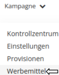 Nachdem sich in das System eingeloggt wurde, muss über den Reiter “Kampagne” der Punkt “Werbemittel” aufgerufen werden.