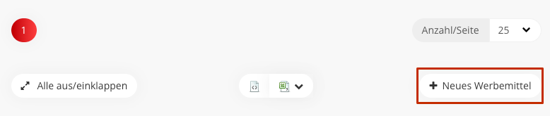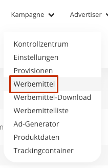 Im Kampagnenkontrollzentrum kann der Reiter "Werbemittel" ausgewählt werden: