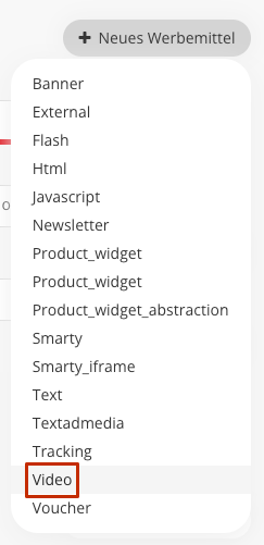 Neben normalen Text- oder Bannerwerbemittel ist es möglich sogenannte Videowerbemittel im System anzulegen. Über diese Werbemittel ist es dem Publisher möglich, Videos auf seiner Plattform zu platzieren, die entsprechend der Performance vergütet werden können. Hierbei können unterschiedliche KPIs erfasst werden, wie bspw. die Viewlänge oder die angehörten Videosekunden.